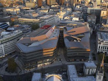 One New Change is a contemporary building with a total of eight floors comprising offices on the top four floors and cafes, restaurants and shops on the lower floors. With around 60 stores spanning three floors, One New Change is one of the largest shopping centres in central London, rivaling other London shopping hot-spots. A panoramic lift in the buidling's centre provides the public with access to a roof level terrace offering impressive views over St. Paul's Cathedral dome.